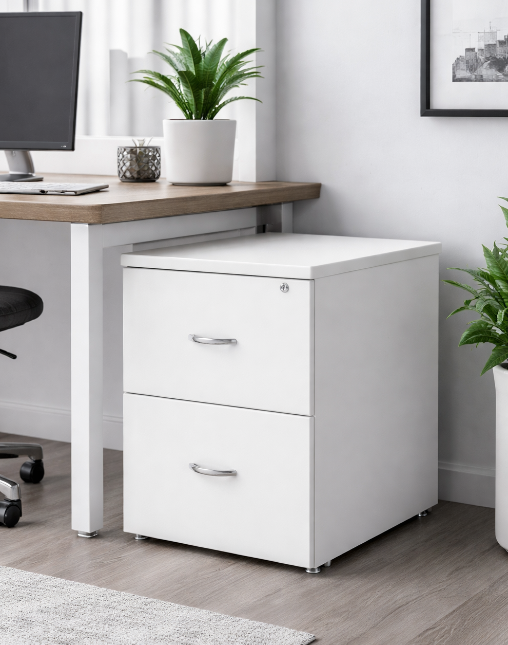Organiza tu oficina con estilo y funcionalidad con nuestro archivero vertical de 2 gavetas en melamina color blanco, diseñado para complementar espacios modernos y profesionales.