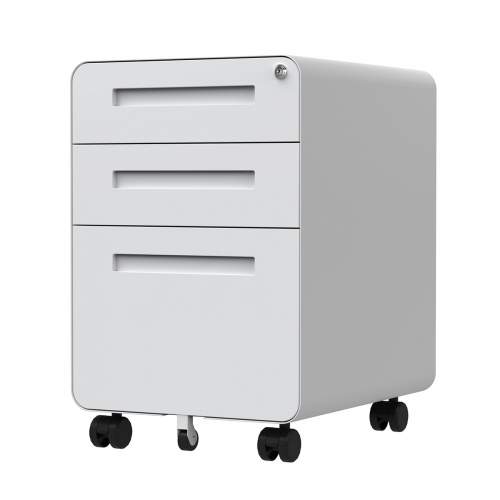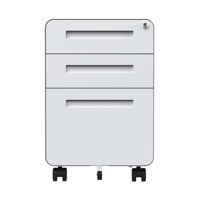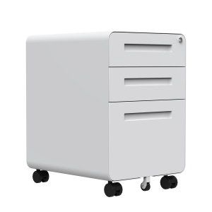 Archivero de 3 cajones de aspecto elegante con diseño de esquina redondeada.