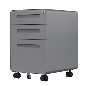 Archivero de 3 cajones de aspecto elegante con diseño de esquina redondeada.