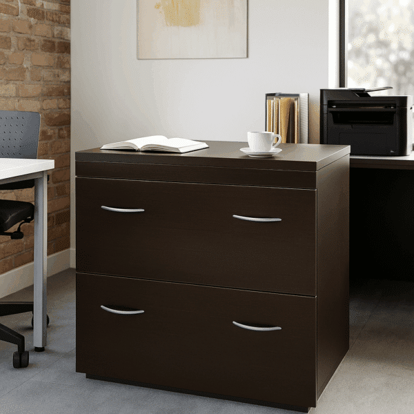 Archivero horizontal Elite de 2 gavetas, fabricado en melamina resistente con estructura sólida de 28 mm. Cuenta con correderas telescópicas de extensión total, doble jaladera metálica y cerradura frontal para mayor seguridad. Incluye niveladores, alta resistencia a la corrosión y se entrega ensamblado, listo para uso en oficina.