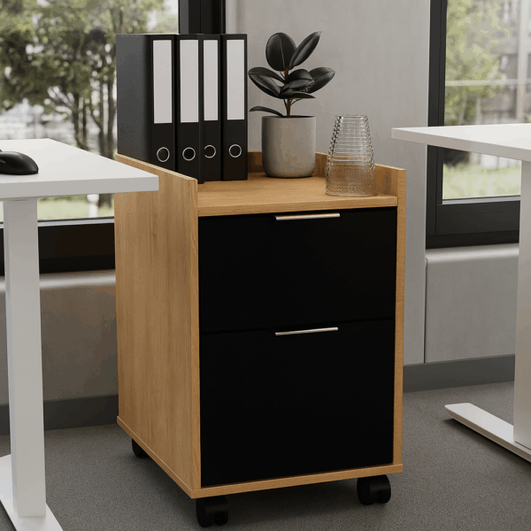 El Archivero Móvil Línea M 2A es un mueble diseñado especialmente para entornos laborales modernos, combinando funcionalidad, resistencia y estética contemporánea. Fabricado con materiales de alta gama, su estructura está pensada para ofrecer durabilidad y soporte a un uso frecuente en oficinas y espacios de trabajo. Los cajones cuentan con correderas de extensión lateral de 35 cm capaces de soportar hasta 25 kg, mientras que su construcción en acero calibre 0.8 mm con acabado niquelado garantiza estabilidad y resistencia al desgaste. El cuerpo del gabinete está elaborado con melamina precompuesta de 16 mm con recubrimiento termofusionado, y los cubrecantos de PVC de 2 mm aseguran un acabado prolijo y duradero.