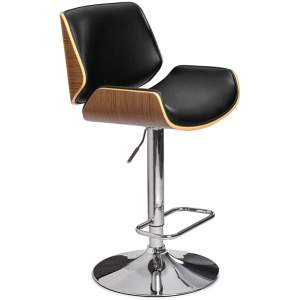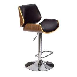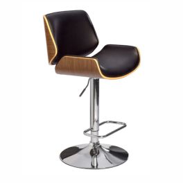 Banco de madera termo formada tapizada, con base hidráulica en metal cromado.