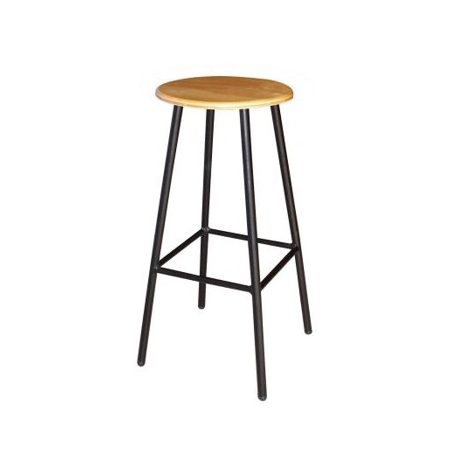Estructura tubo redondo de 7/8″ cal.18, descansa pies con tubo redondo de 5/8″ cal. 18, pintura epóxica en color negro, asiento en madera de pino natural de primera calidad de 16 mm, terminado en barniz resistente, regatones en polietileno de alta densidad, tipo bola color negro.