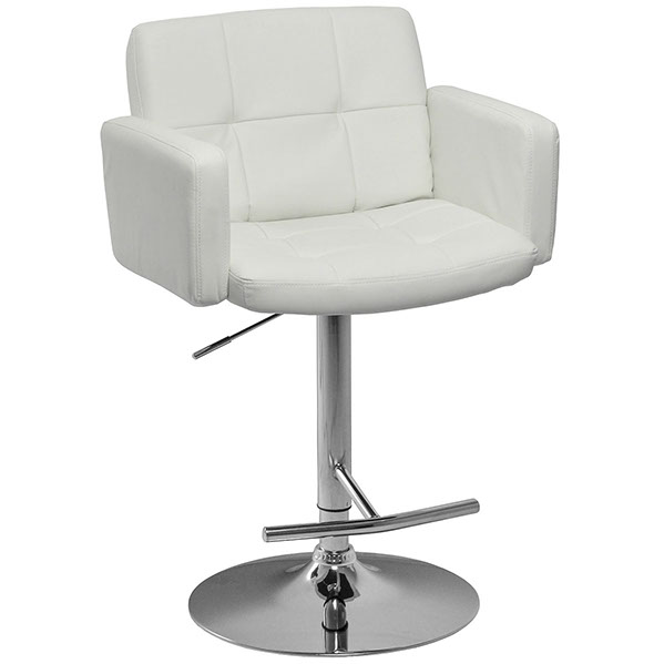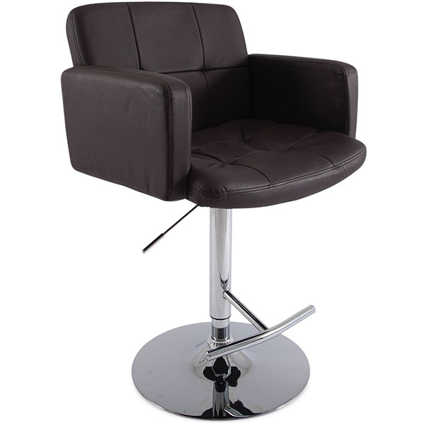 Banco con brazos tapizado en imitación de piel con base hidráulica en metal cromado.
