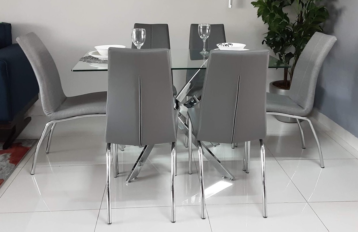 Mesa cubierta de cristal, base cromada