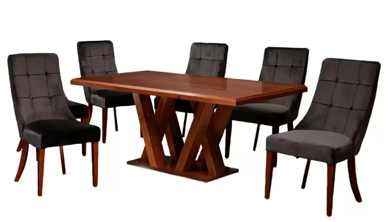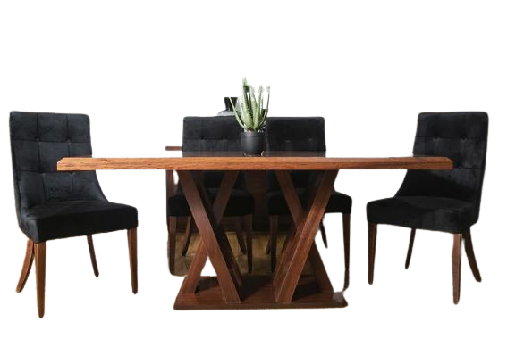 Comedor fabricado en madera y mdf enchapado en madera de Tzalam , acabado poliester.