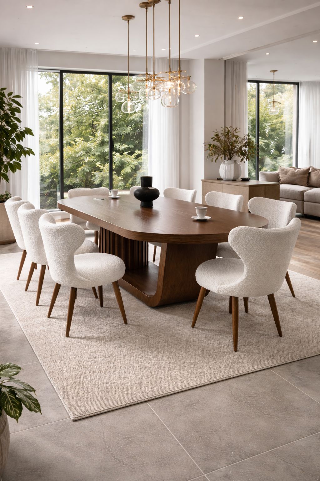 La mesa se complementa perfectamente con sillas de estilo actual, tapizadas y diseñadas para brindar confort y armonía visual, creando un ambiente cálido y acogedor ideal para reuniones familiares o sociales.