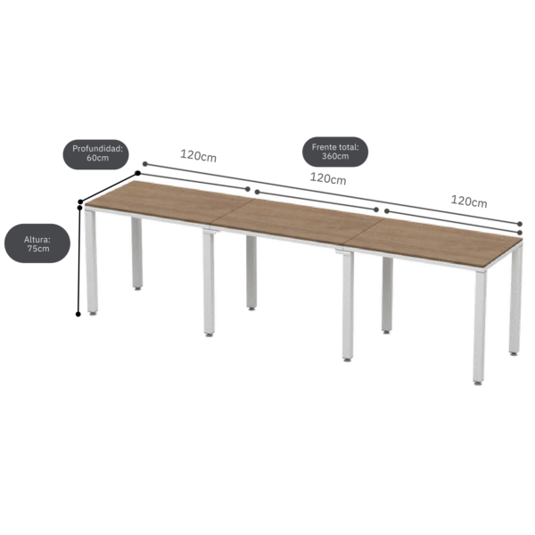 El escritorio lineal BillyDesk es un sistema modular listo para armar, ideal para estaciones de trabajo para 3 personas con posibilidad de expansión ilimitada. Perfecto para oficinas y proyectos corporativos que requieren entrega rápida, resistencia y precio competitivo.
