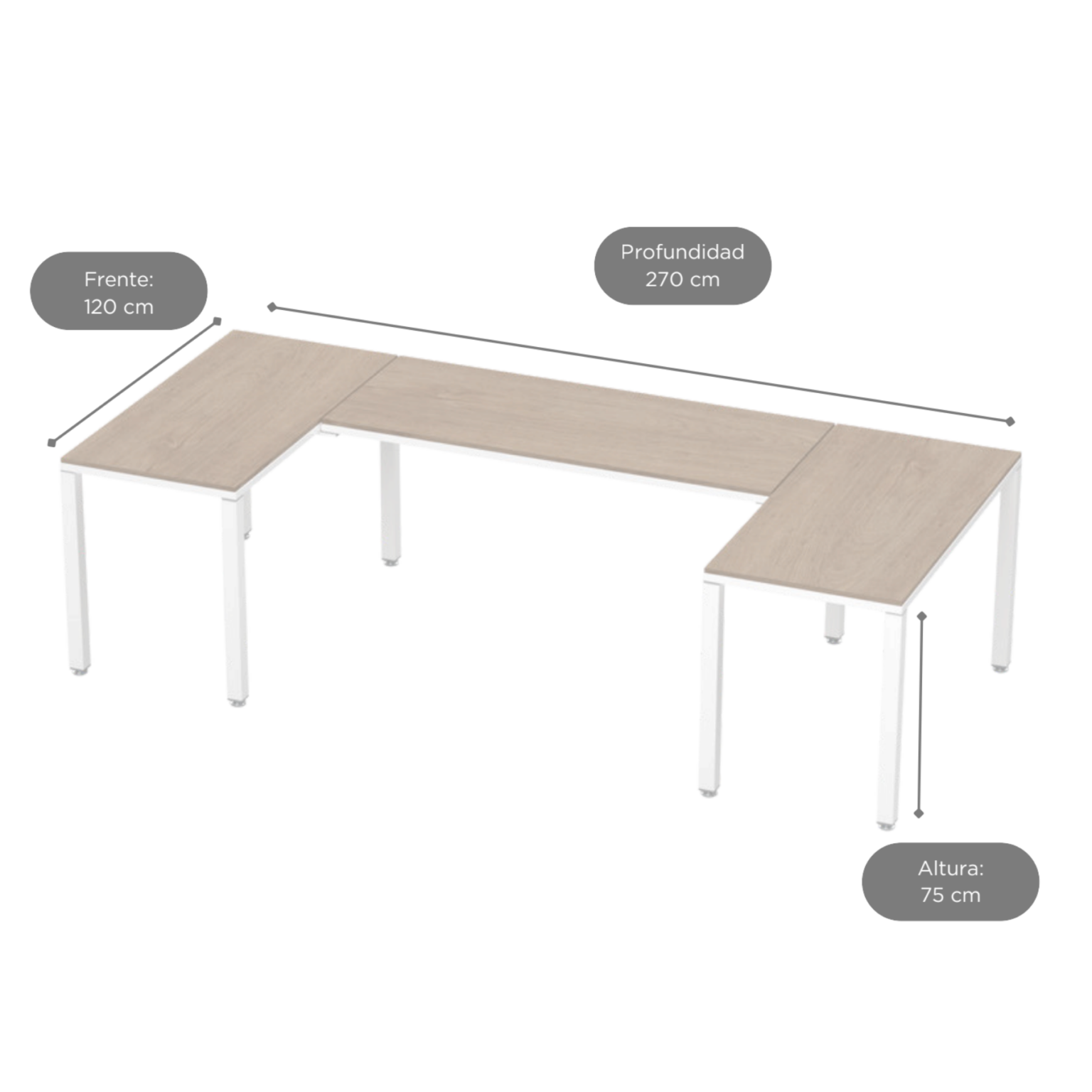 Configuración en U Billydesk 120x270x120cm