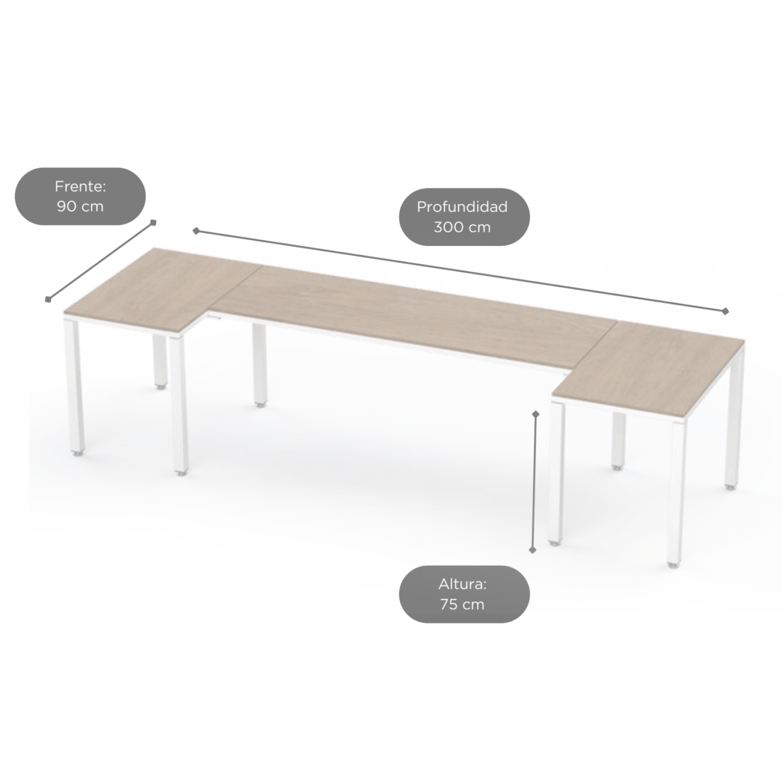 Configuración en U Billydesk 90x300x90cm