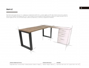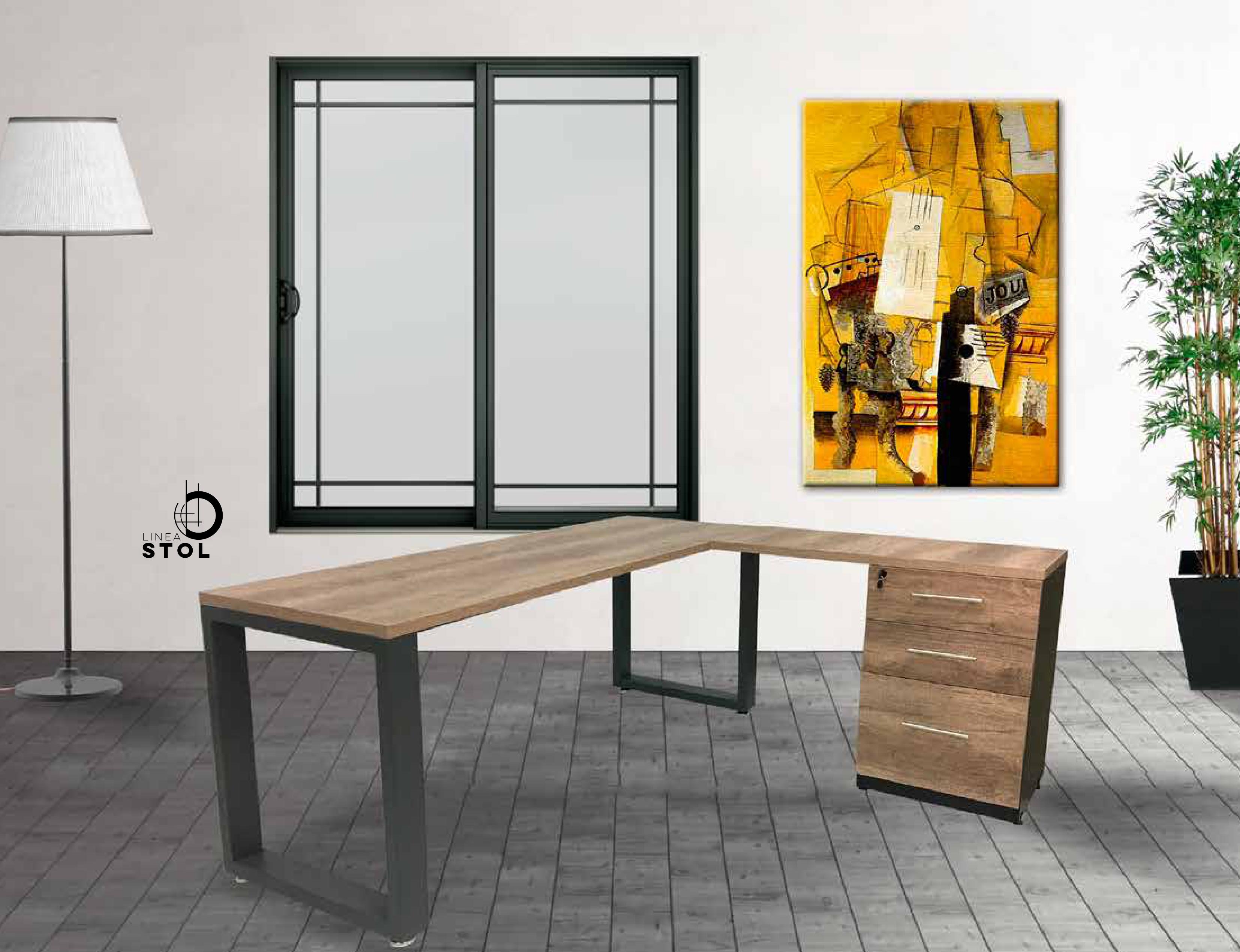 Escritorio semi-ejecutivo con cubierta de melamina y estructura metálica.