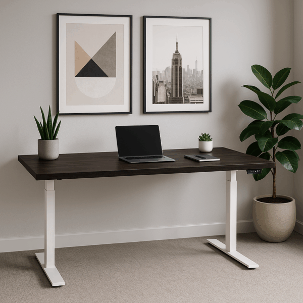 Mesa ejecutiva con ajuste de altura eléctrico o manual que combina diseño moderno, ergonomía y funcionalidad. Fabricada con cubierta de melamina de 16 mm y estructura metálica reforzada, soporta hasta 100 kg y ofrece comodidad y rendimiento para espacios directivos.