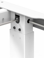 Mesa ajustable en altura (manual o eléctrica) para trabajo ergonómico. Cubierta melamina 16 mm, estructura metálica blanca con patas telescópicas, soporta 100 kg. Fácil ensamble, estable y resistente. Medidas: 120/150 × 60 cm. Ideal oficina u home office.