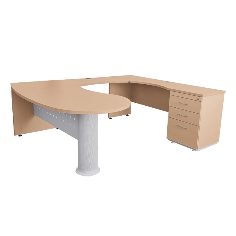 Cajonera de 3 gavetas: 2 cajones papeleros y 1 archivero tamaño oficio, sistema colgante en el cajón de archivo. Con zoclo metálico terminado en pintura electrostática.