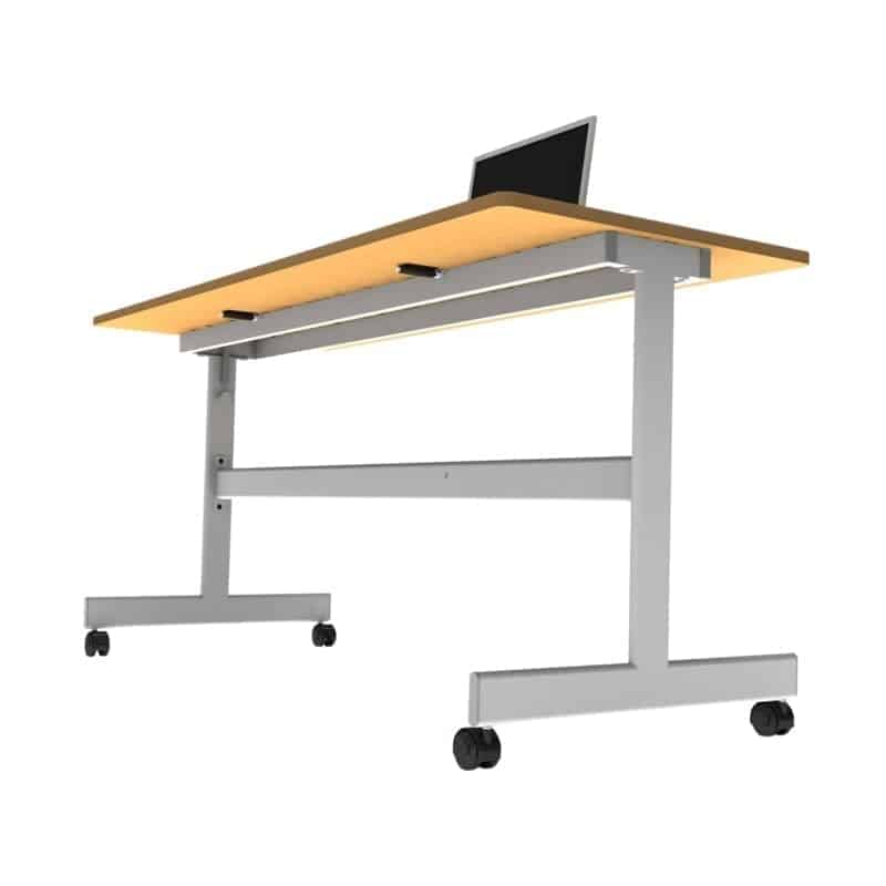 La mesa abatible es ideal para áreas de capacitación que están en constante transformación, ya que por sus rodajas permite el fácil desplazamiento del escritorio.