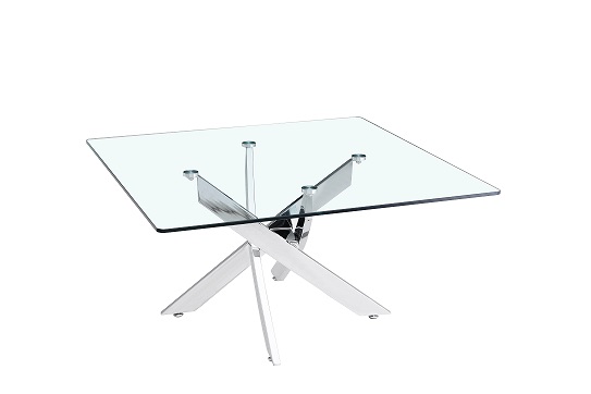 Mesa de Centro. Fabricado en Acero Inoxidable y Cristal Templado. Con acabado en color Plata. Medidas: 90 x 90 x 45 cm.