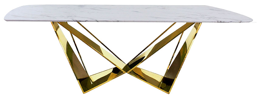 Su base en acero inoxidable color dorado brinda estabilidad, resistencia y un toque contemporáneo que destaca en cualquier ambiente. Gracias a sus dimensiones de 160 cm de largo, ofrece amplio espacio para exhibir decoraciones, vajillas o utilizarse como consola auxiliar.
