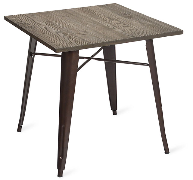 Mesa cubierta cuadrada en madera de olmo color chocolate y base de metal chocolate.