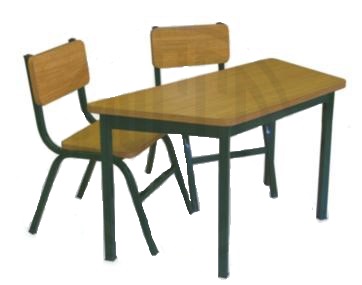 Mesa trapezoidal infantil de 0.85 x 0.55 x 0.30 x 0.50 de altura, estructura en tubular cuadrado de 1" x 1" calibre 18, la cubierta fabricada en triplay y melamina tipo formaica.
