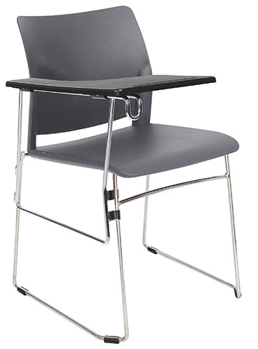 estructura: barra de acero sólido de 11 mm de diámetro, con terminado en cromo. Con paleta lateral abatible color negro fijada a la estructura a base de presión por medio de un soporte. asiento y respaldo: en dos piezas en polipropileno de alta resistencia y duración. color: negro, gris, rojo, blanco o arena. peso máximo de resistencia: 160 kgs.