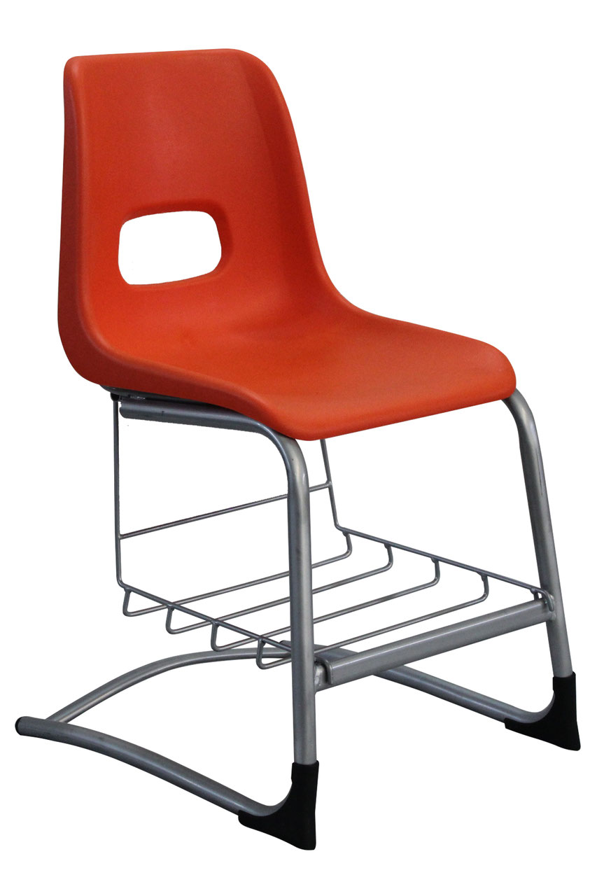 Estructura tubo redondo de 1” cal. 18, pintura epoxica texturizada, color negro, concha de polipropileno en colores negro, azul y naranja, regaton en polietileno de alto impacto tipo bola internos color negro, canastilla en acero pulido de 1/4” soldada.