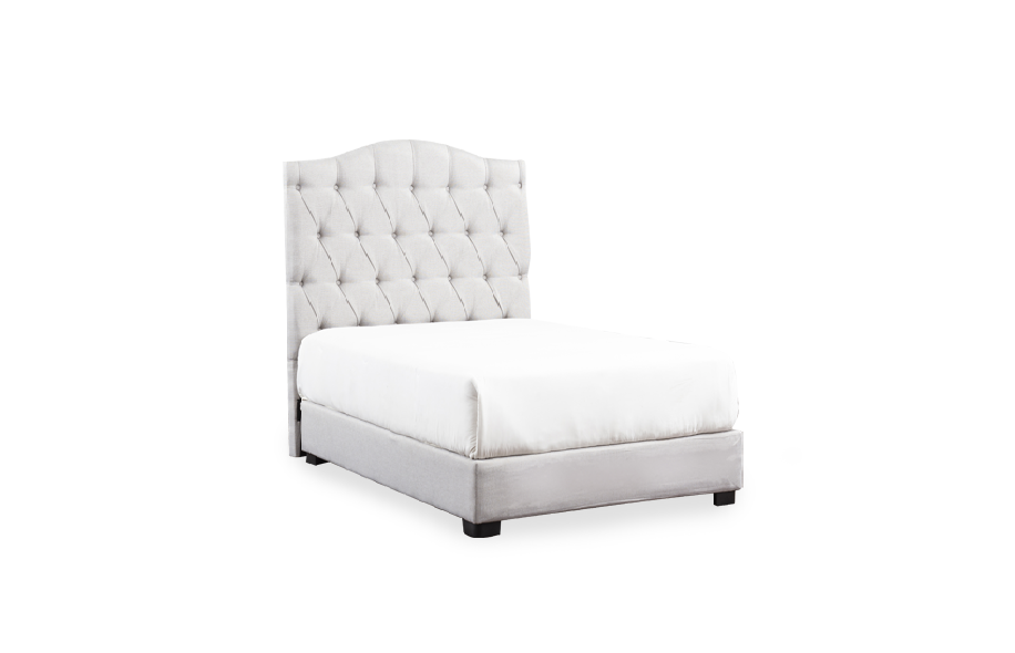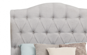 Cabecera capitoneada en tela color gris.