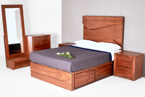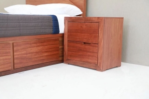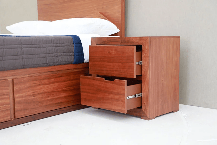 Juvenil, corte 45 grados, diseño fresco, enchapado de Tzalam, buró con 2 cajones, jaladera de resaque, líneas perfectas.
