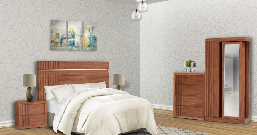 CABECERA CON LUZ , 2 BUROS , 1 TOCADOR , UN ESPEJO ABATIBLE.