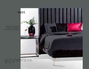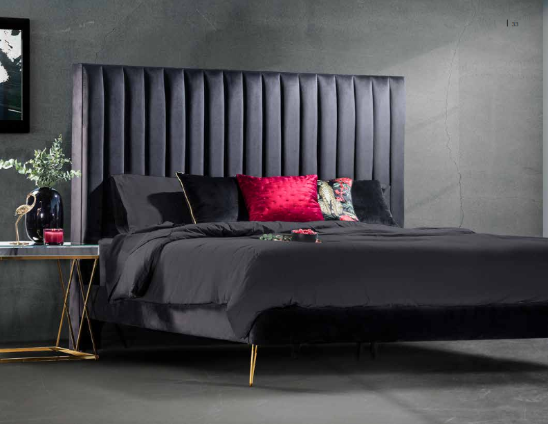 Base delgada con patas metálicos y acabados sofisticados en terciopelo en tela velvet, en color negro, azul, beige, mostaza, plata, rosa y verde con una altura en la cabecera de 1,60 m