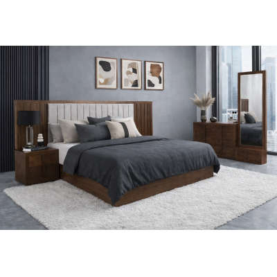 Recamara Moderna minimalista tapizada en Linen Grey