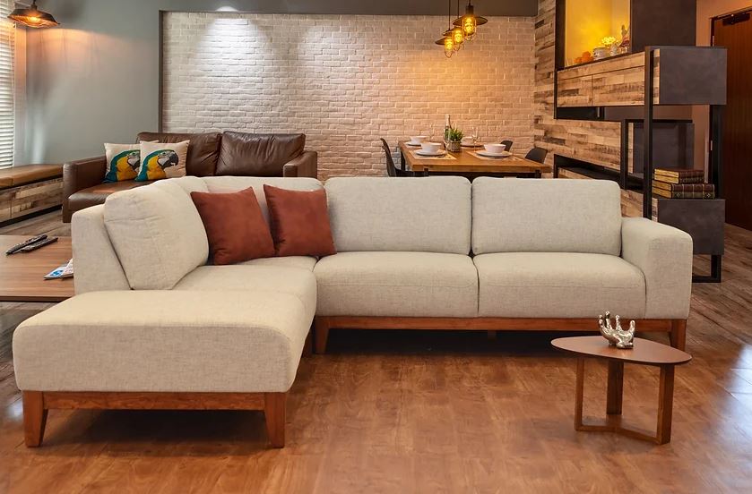 Su estructura sólida y base de madera aportan carácter y durabilidad, mientras que sus asientos amplios y confortables invitan al descanso y a disfrutar cada momento en casa. El tono neutro del tapizado realza su presencia y facilita la combinación con distintos estilos decorativos.