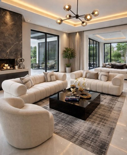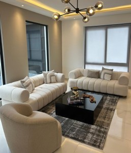 Sala 3-3 de diseño contemporáneo con inspiración Japandi, que combina la calidez del estilo japonés con la funcionalidad escandinava. Su estética moderna tipo puffy destaca por sus líneas suaves, volúmenes acolchados y formas orgánicas que brindan una sensación de confort y elegancia en cualquier espacio.