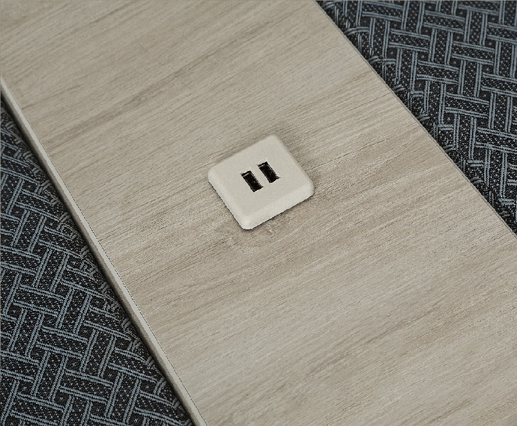 - En melamina de 16 mm. en colores encino polar y nogal británico, con conector de usb en color blanco únicamente.