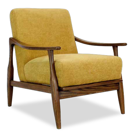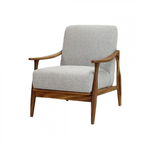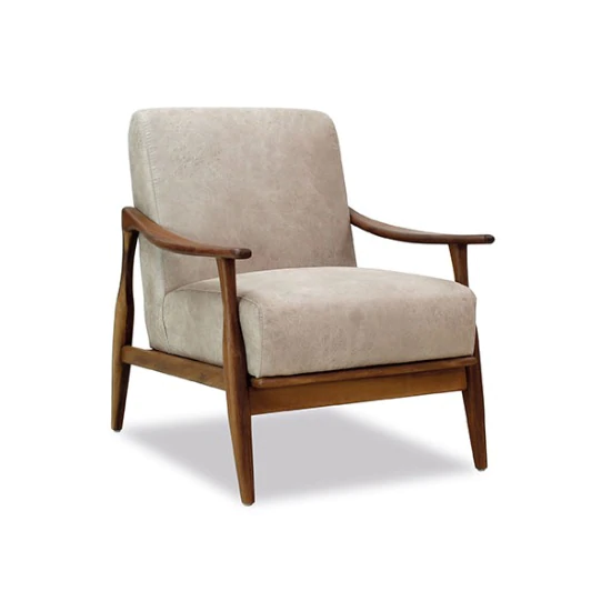 Sillón fabricado en tela y madera con acabado color Morgan Mercury y Montana Wolf.