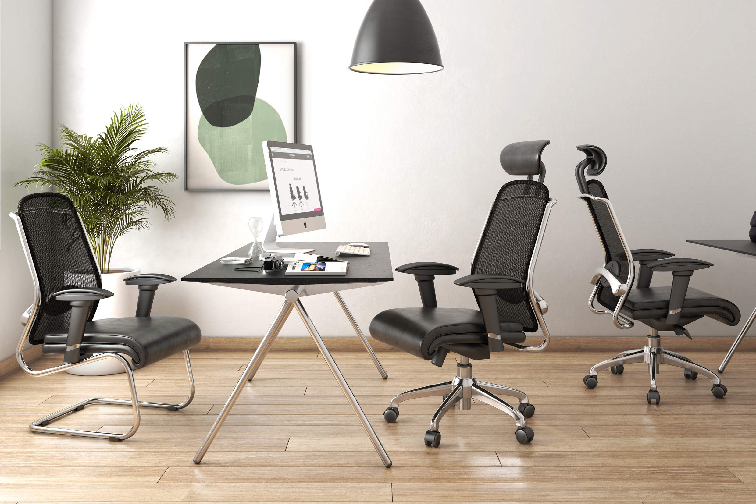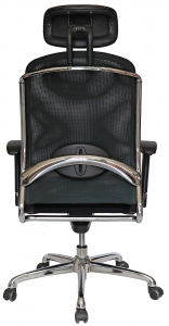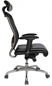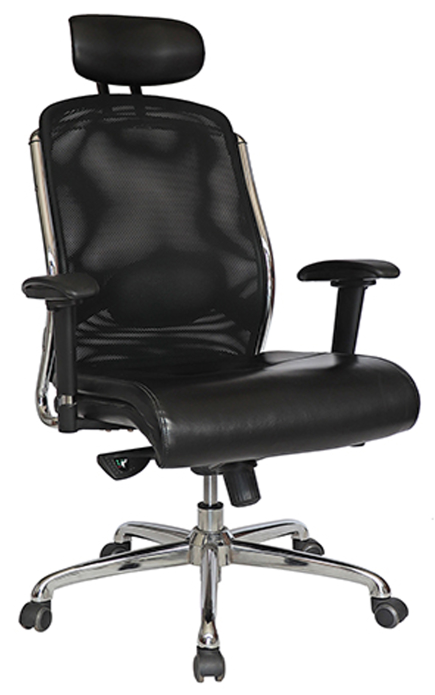 base: estrella de 5 puntas en metal, terminada en cromo y con rodajas tipo dual y/o regatones. elevación: por medio de pistón neumático que permite ajustar la altura del asiento. mecanismo: en acero reforzado tipo rodilla articulado (knee-tilt) con sistema de reclinación y palanca de bloqueo, perilla de regulación de tensión para el sistema de reclinación y palanca de bloqueo para la posición de inclinación del respaldo (contacto permanente). brazos: de poliuretano semi-rígido con soporte de acero y de 7 posiciones. respaldo: en malla de diseño ergonómico con cabecera acojinada y tapizada. asiento: hule espuma laminado flexible con densidad de 30 kgs/m3 y alta resilencia. tapiz: respaldo de malla de color negro y asiento en soft revolving leather. peso máximo de resistencia: 120 kgs.