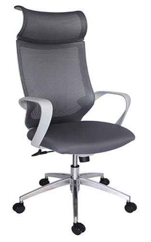 base: estrella de 5 puntas en aluminio fundido y pulido, rodajas tipo dual y/o regatones. elevación: por medio de pistón neumático que permite ajustar la altura del asiento. mecanismo: plato de acero reforzado con sistema de reclinación y palanca de bloqueo, perilla de regulación de tensión para el sistema de reclinación. brazos: de polipropileno semi-rígido. respaldo: alto en malla de diseño ergonómico con cabecera. asiento: hule espuma laminado flexible con densidad de 60 kgs/m3 con retardante a la flama y alta resilencia. tapiz: respaldo en malla de color gris y asiento en tela o vinil al color de su elección de nuestro catálogo. peso máximo de resistencia: 120 kgs.
