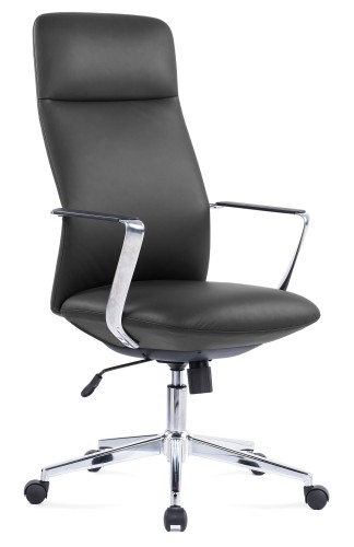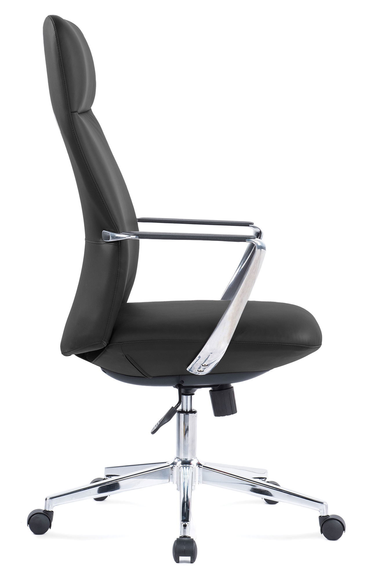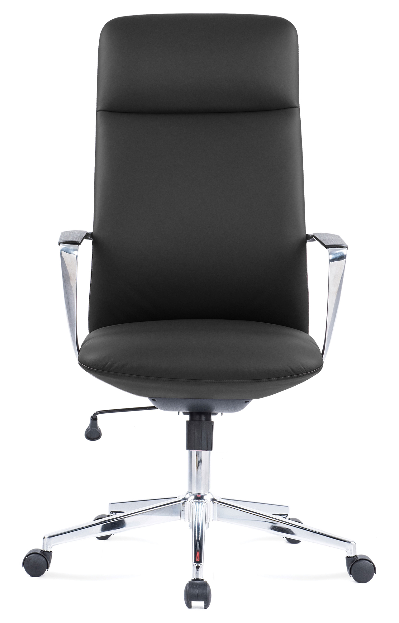 base: estrella de 5 puntas en acero fundido y cromado, rodajas tipo dual. elevación: por medio de pistón neumático que permite ajustar la altura del asiento. mecanismo: en solera de acero tipo basculante con sistema de reclinación y palanca de bloqueo, perilla de regulación de tensión para el sistema de reclinación y palanca de bloqueo para la inclinación del respaldo. brazos: de aluminio fundido y pulidos con terminado natural, con pad de polipropileno rígido de alta resistencia. respaldo: respaldo alto con estructura de acero y base de madera acojinado con hule espuma laminada flexible con densidad de 50 kgs/m³ y alta resilencia. asiento: base de madera acojinado con hule espuma laminada flexible con densidad de 50 kgs/m³ y alta resilencia. tapiz: en soft revolving leather de color negro. peso máximo de resistencia: 150 kgs.