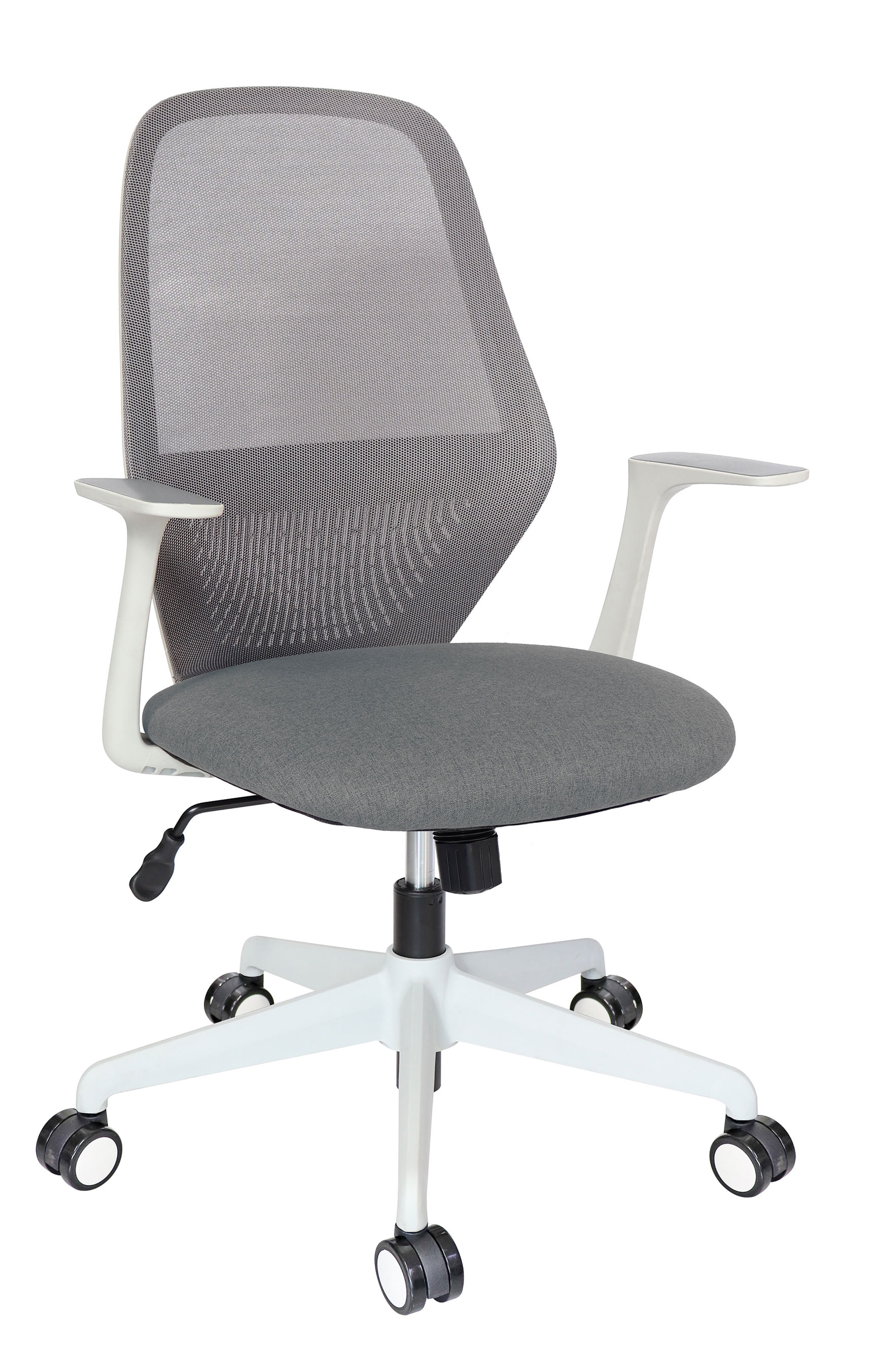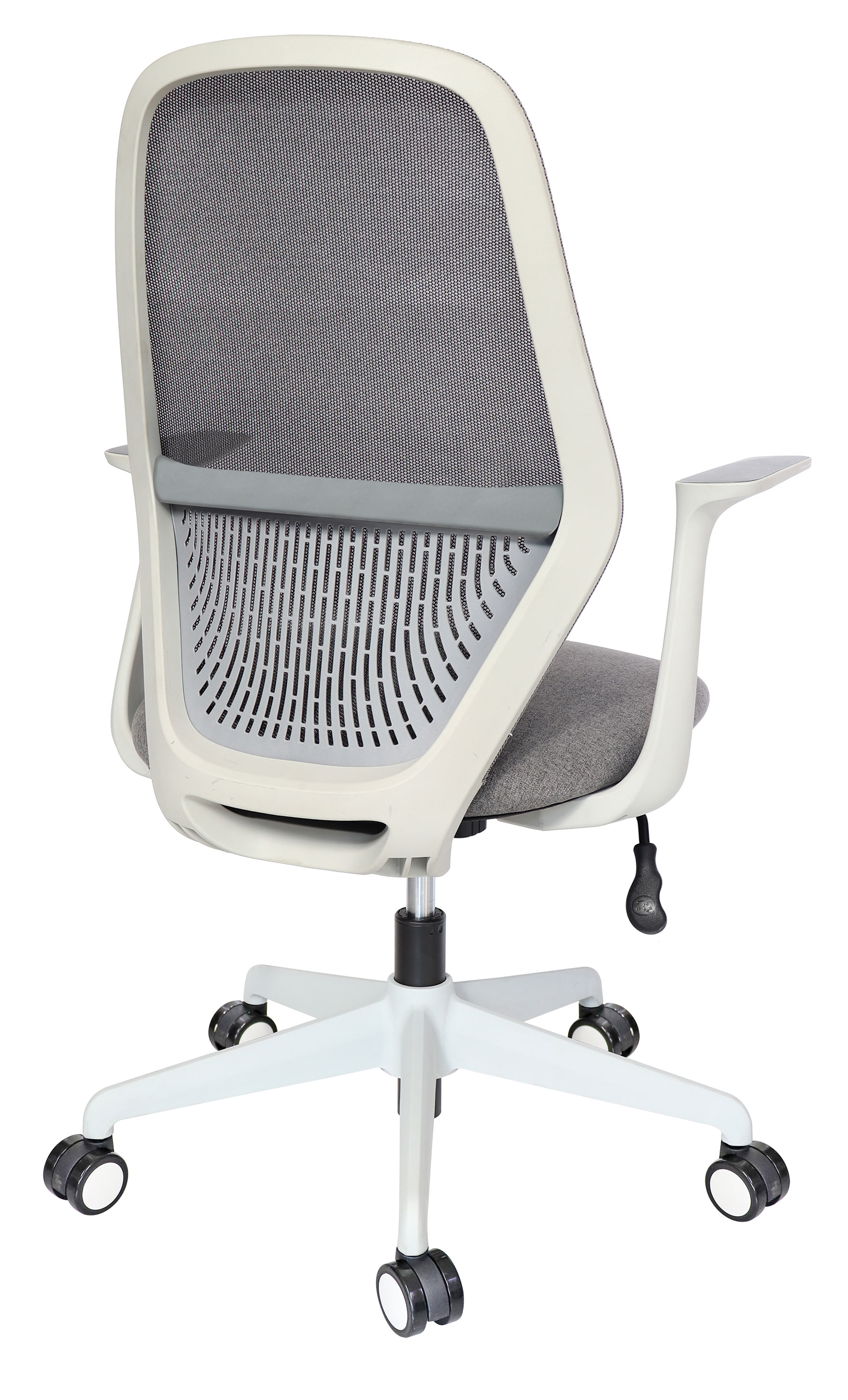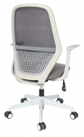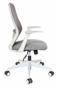 base: estrella de 5 puntas en nylon reforzado, rodajas tipo dual y/o regatones, color gris. elevación: por medio de pistón neumático que permite ajustar la altura del asiento. mecanismo: plato de acero reforzado tipo articulado synchro con sistema de reclinación y palanca de bloqueo, perilla de regulación de tensión para el sistema de reclinación. brazos: de polipropileno semi-rígido. respaldo: en malla de diseño ergonómico. asiento: hule espuma de poliuretano inyectado con densidad de 60 kgs/m³ con retardante a la flama y alta resilencia. tapiz: respaldo de malla de color gris y asiento en tela o vinil al color de su elección de nuestro catálogo. peso máximo de resistencia: 90 kgs.