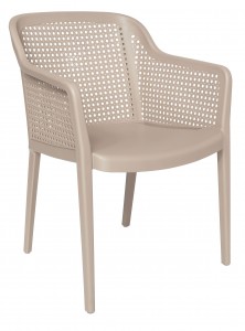 respaldo, asiento y patas: terminado en imitación bejuco de una sola pieza en polipropileno de alta resistencia y duración para intemperie, resistente a los rayos ultravioleta (UV) y al ambiente salino. color: blanco, cappuccino, negroazulado o cámel. peso máximo de resistencia: 130 kgs.