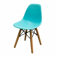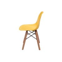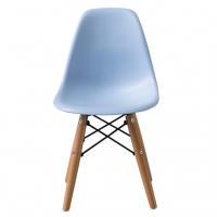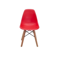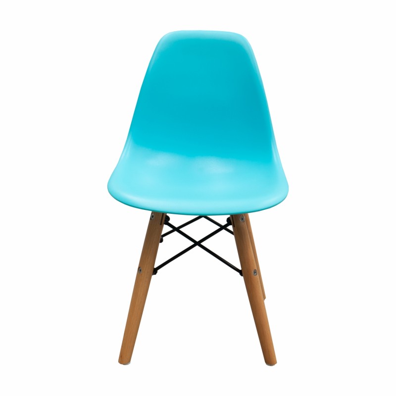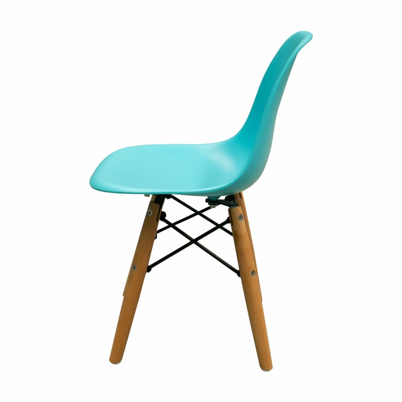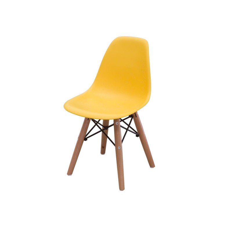 SILLA INFANTIL EN POLIPROPILENO CON BASE DE MADERA NATURAL Y DETALLES EN ACERO.