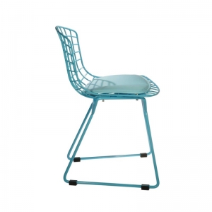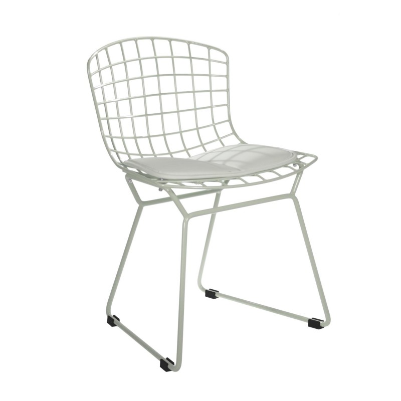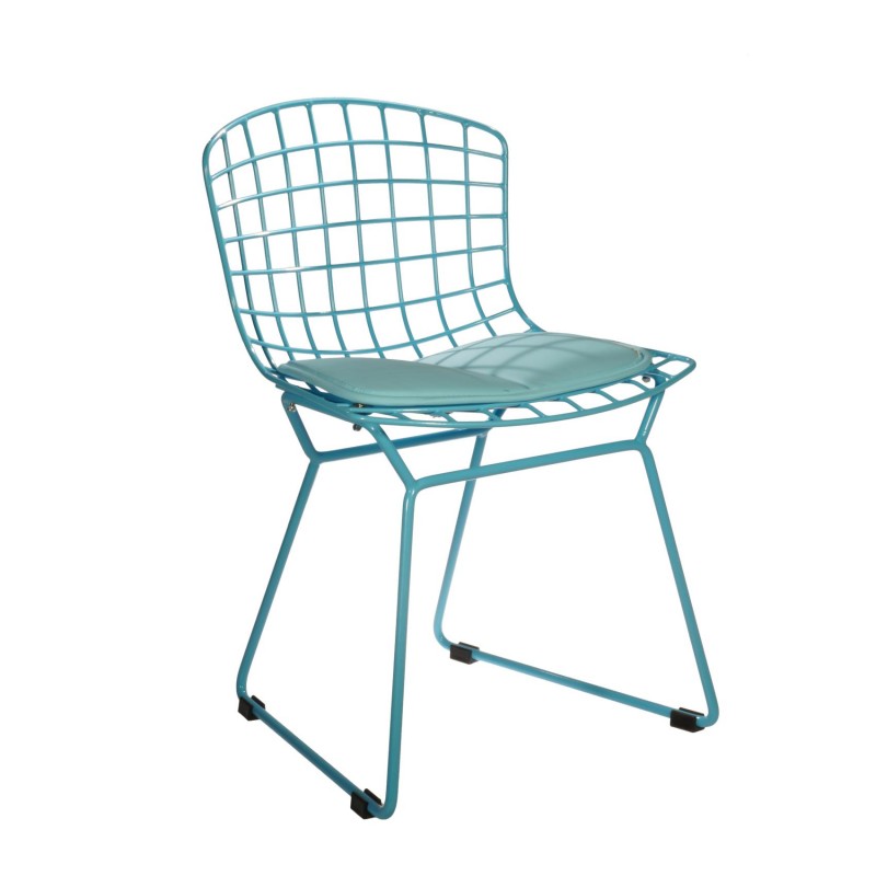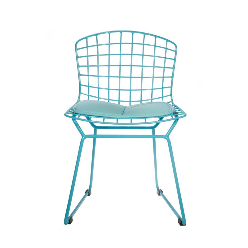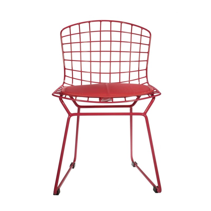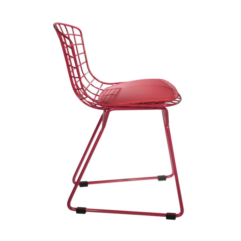 SILLA INFANTIL EN MALLA DE ACERO PINTADO, CON COJÍN REMOVIBLE EN VINIPIEL.