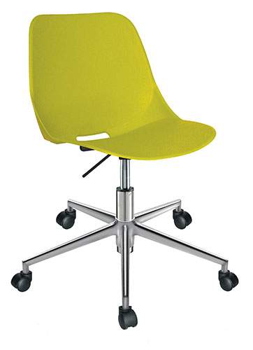 base: estrella de 5 puntas en aluminio fundido y pulido, rodajas tipo dual y/o regatones. elevación: por medio de pistón neumático con terminado en cromo que permite ajustar la altura del asiento. mecanismo: plato de acero reforzado con palanca de accionamiento y bloqueo del pistón neumático. asiento y respaldo: de una sola pieza en polipropileno de alta resistencia y duración. color: negro, azul, abocado, blanco, rojo o gris cálido. peso máximo de resistencia: 120 kgs. NOTA: Las medidas de las alturas aumentan 240 mm con kits cajeros.