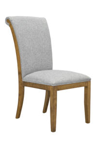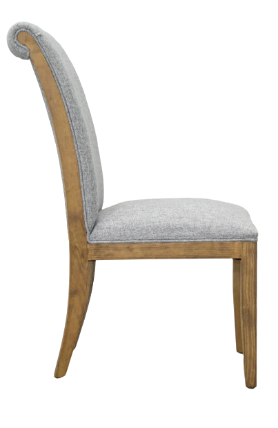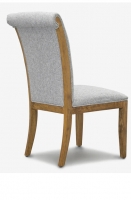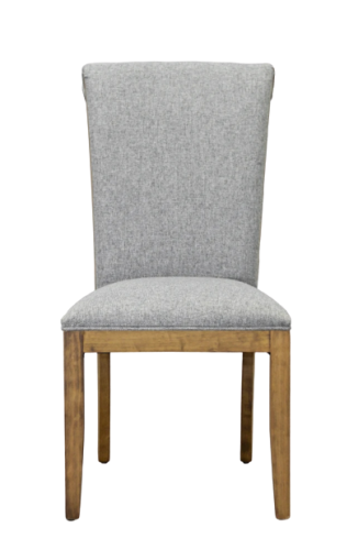 Silla fabricada en madera de pino tapizada en tela.