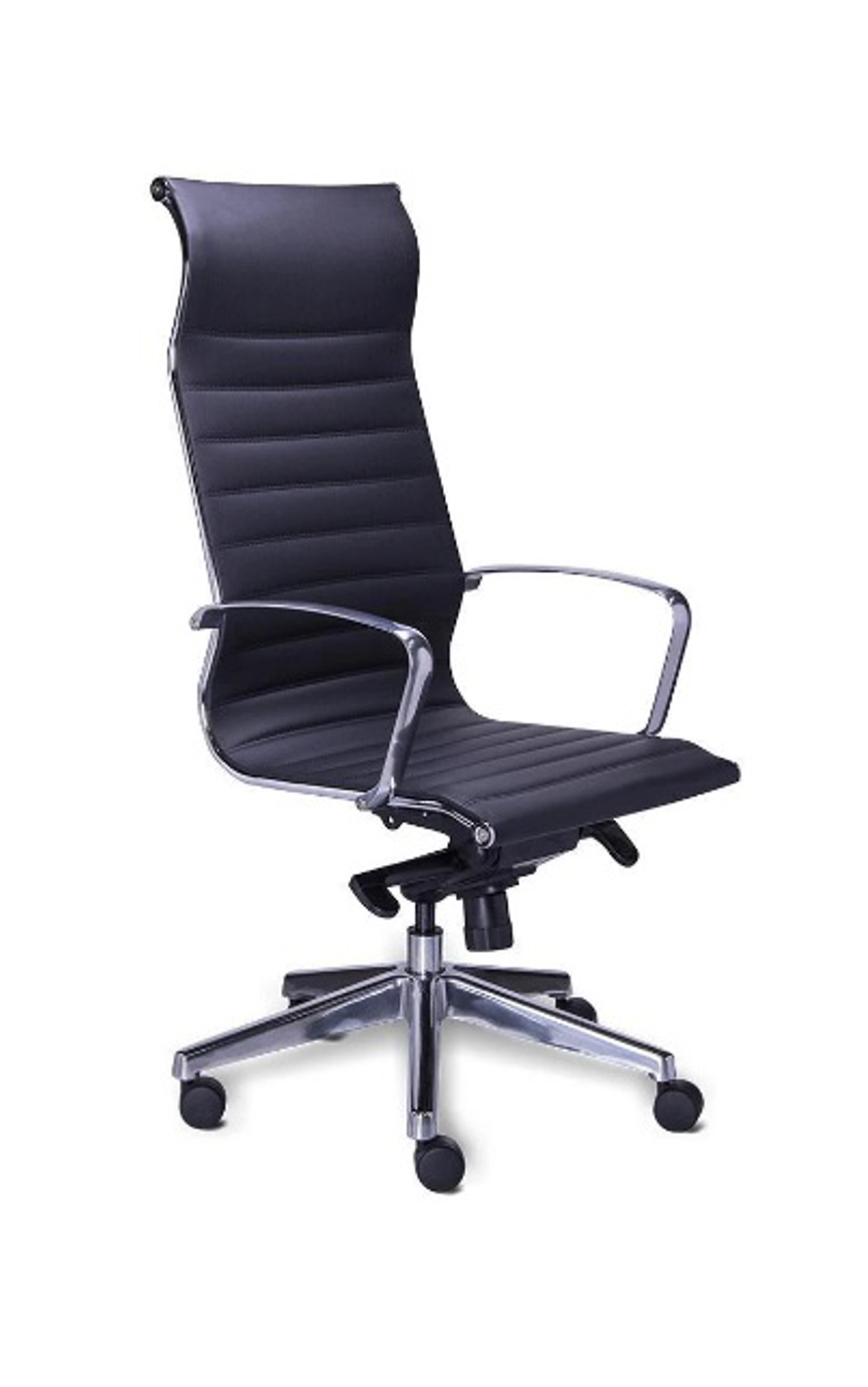 Asiento y respaldo en una sola pieza con diseño ergonómico tapizado en ecoleather. Descansa brazos fijos aluminio.