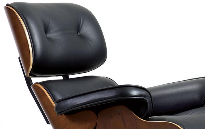 Madera tono nogal, tapizado en piel italiana, herrajes y base de acero inoxidable pulido