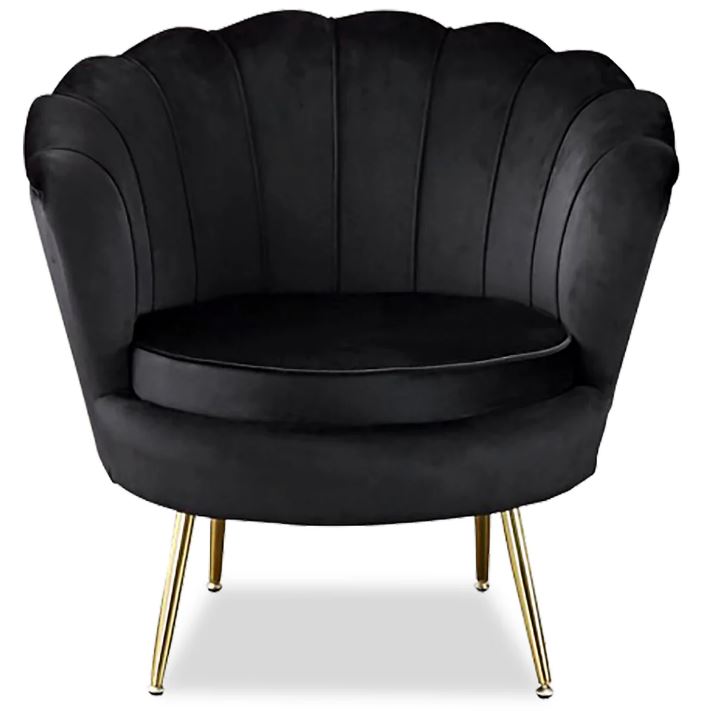 SILLON OCASIONAL SHELL NEGRO CON BASE DORADA
