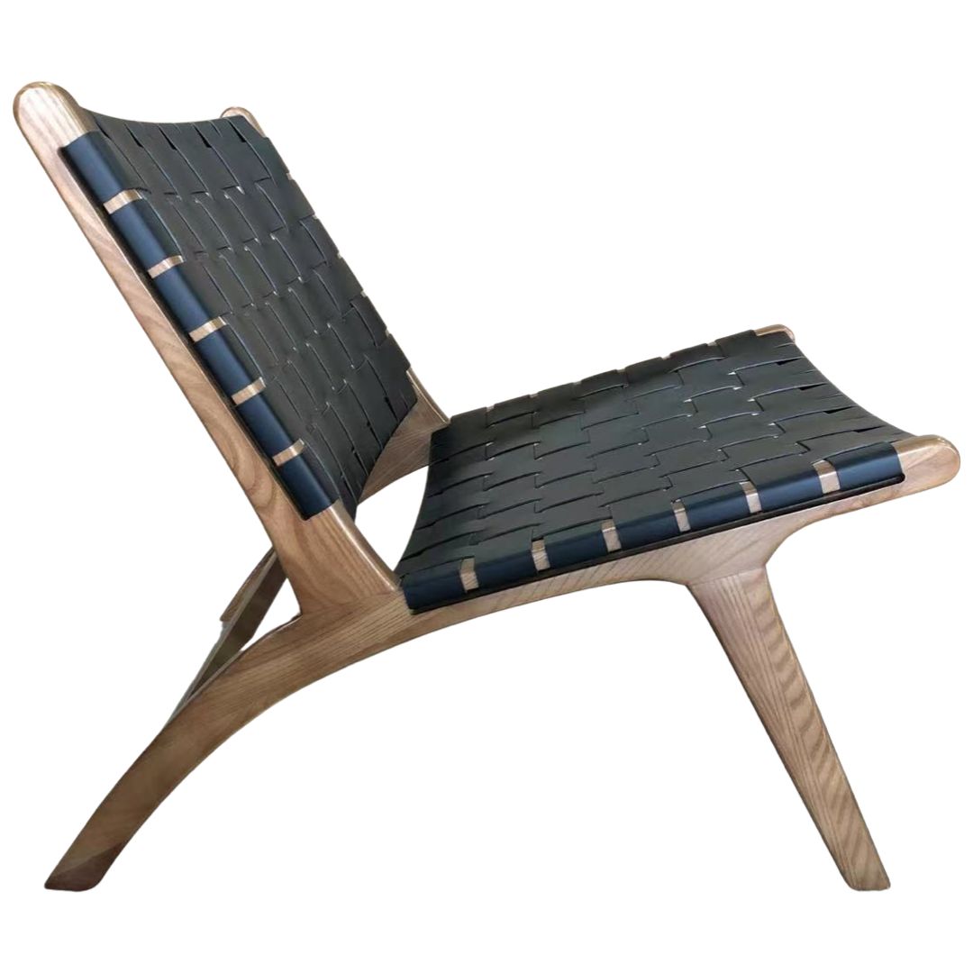 Moderno y elegante sillón fabricado en madera de haya color nogal, asiento y respaldo en tejido de PU.