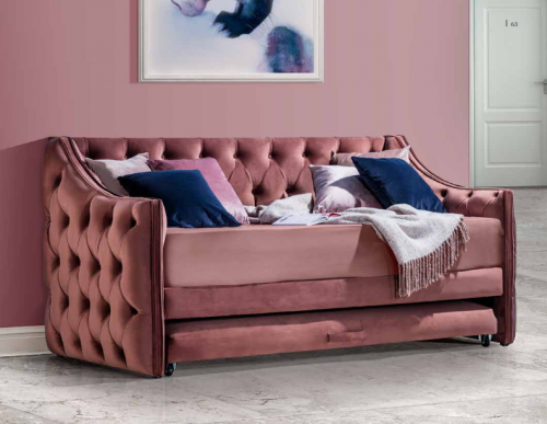 Para espacios confortables y casuales, cama de día con doble uso. tapizado en velvet en colores rosa, azul, plata, negro, mostaza y verde con una altura de 1 m