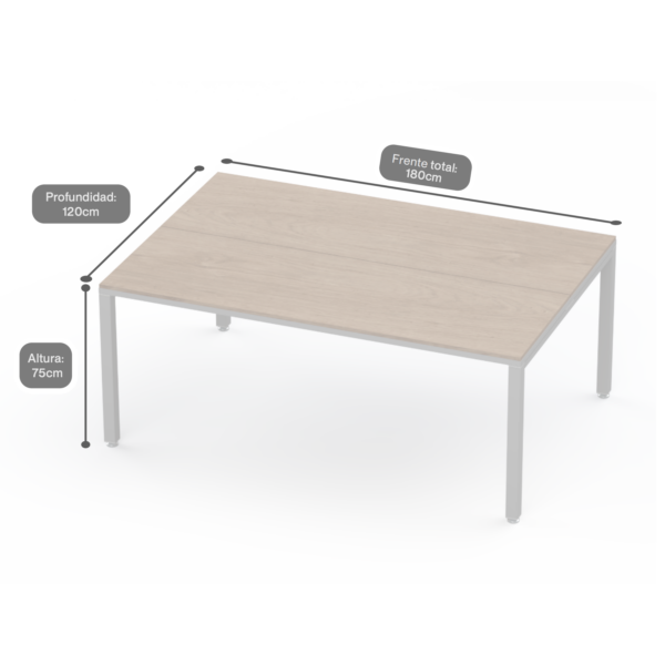 Billydesk es un sistema modular de oficina, flexible y funcional. Cubiertas de melamina 16 mm con cantos PVC, estructura y patas metálicas con pintura electrostática, niveladores y ensamble fácil. Resistente y durable, para 4-6 usuarios.