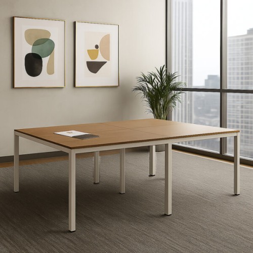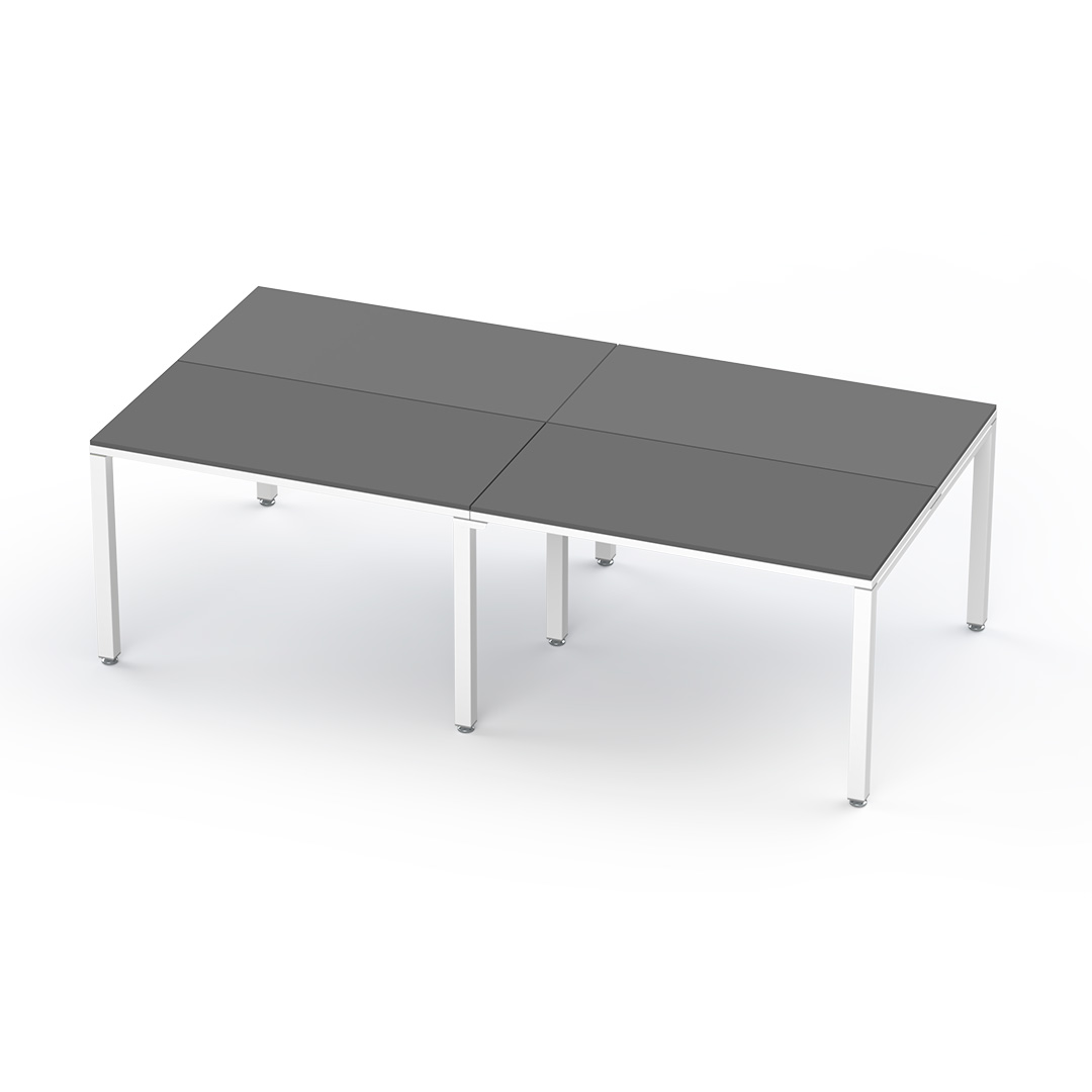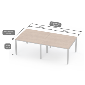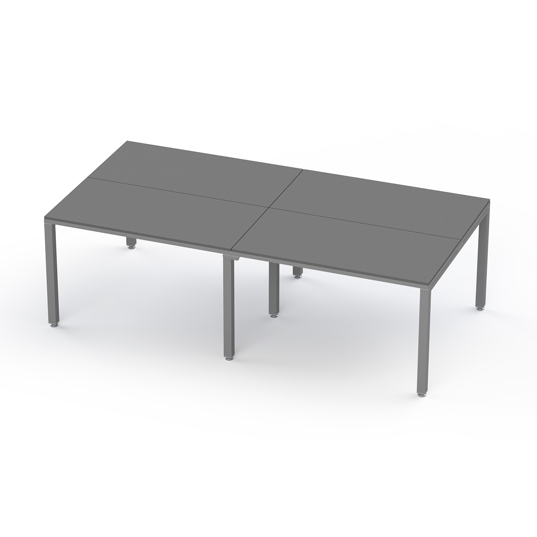 Billydesk es un sistema modular de oficina, flexible y funcional. Cubiertas de melamina 16 mm con cantos PVC, estructura y patas metálicas con pintura electrostática, niveladores y ensamble fácil. Resistente y durable, para 4-6 usuarios.